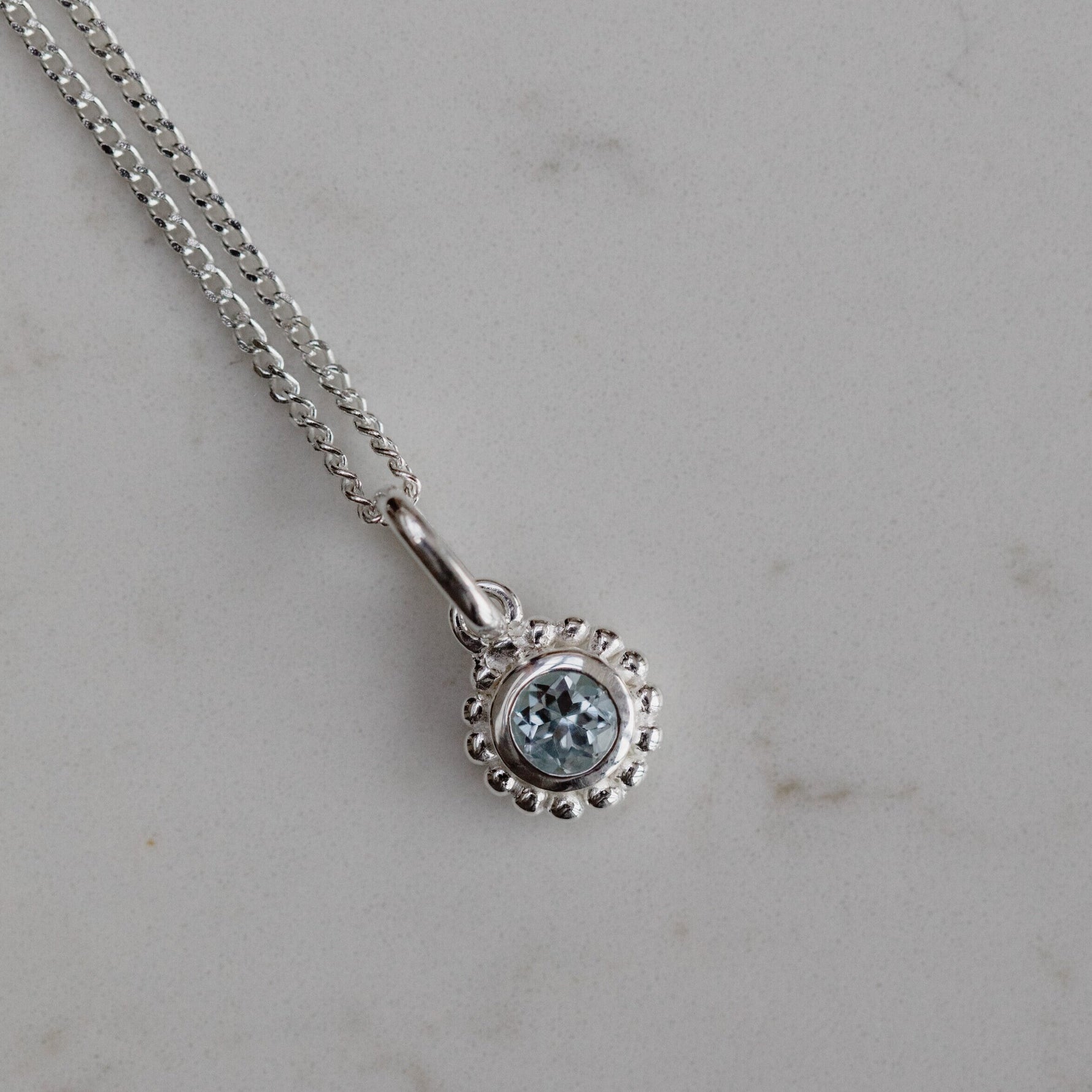 Unit price perThis feminine pendant a pop of light blue, iconic to the gemstone Blue Topaz. Blue Topaz is the stone of peacefulness and is also the birthstone for December. Our TOPIE pendant has matching earrings.