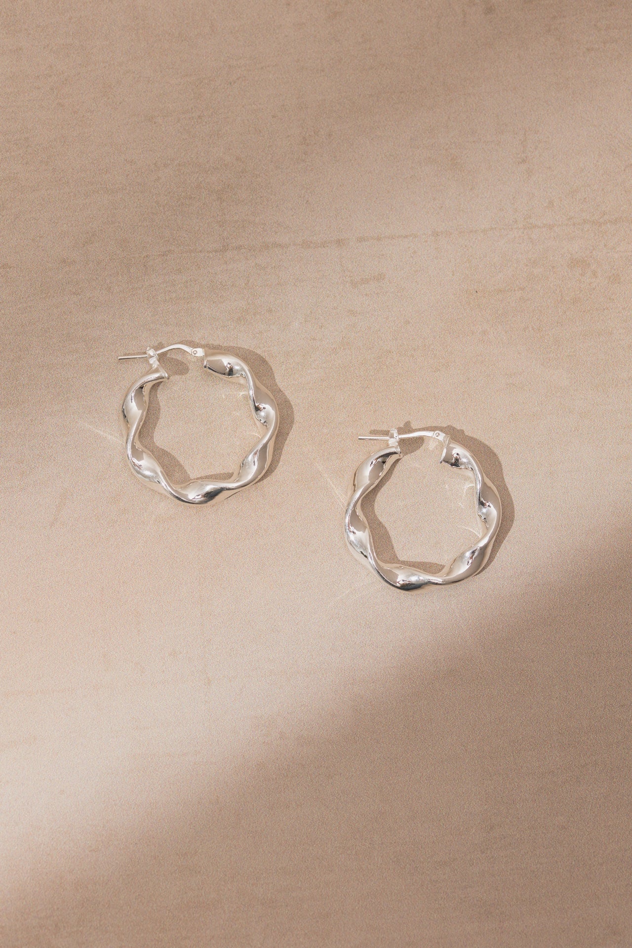 Unit price perMake a statement in our BARLEY twisted wire silver hoops.