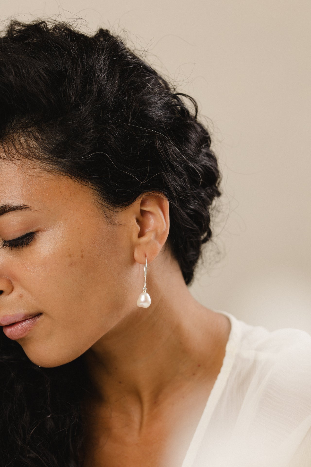 Unit price perOur CALLI pearl drop earrings really show off the pearl as it dangles on a delicate silver wire hook.