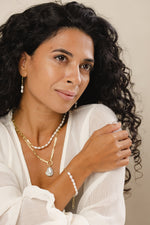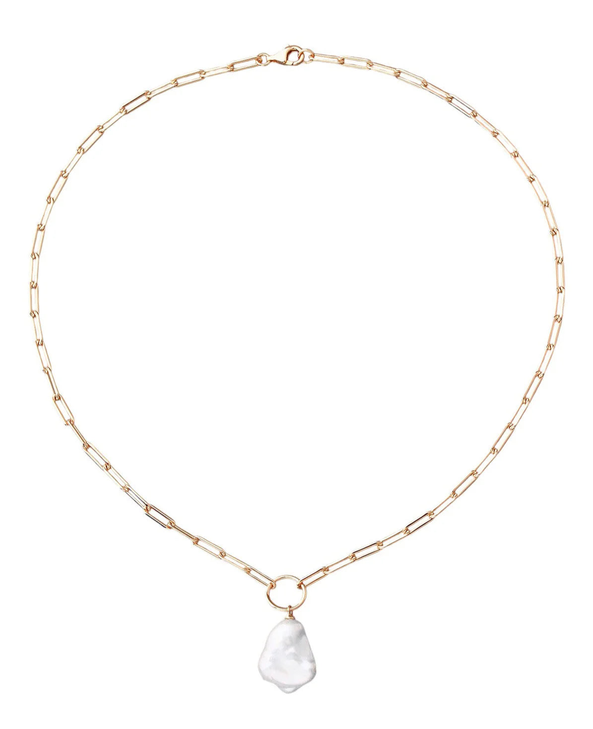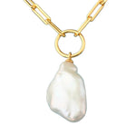 Unit price perMake a statement with our LYRA baroque pearl pendant necklace. A stunning, large pearl sits on a gold plated silver, paper clip chain. Perfect for layering.