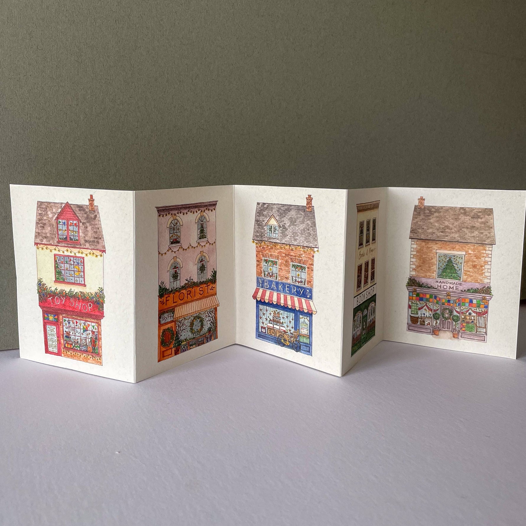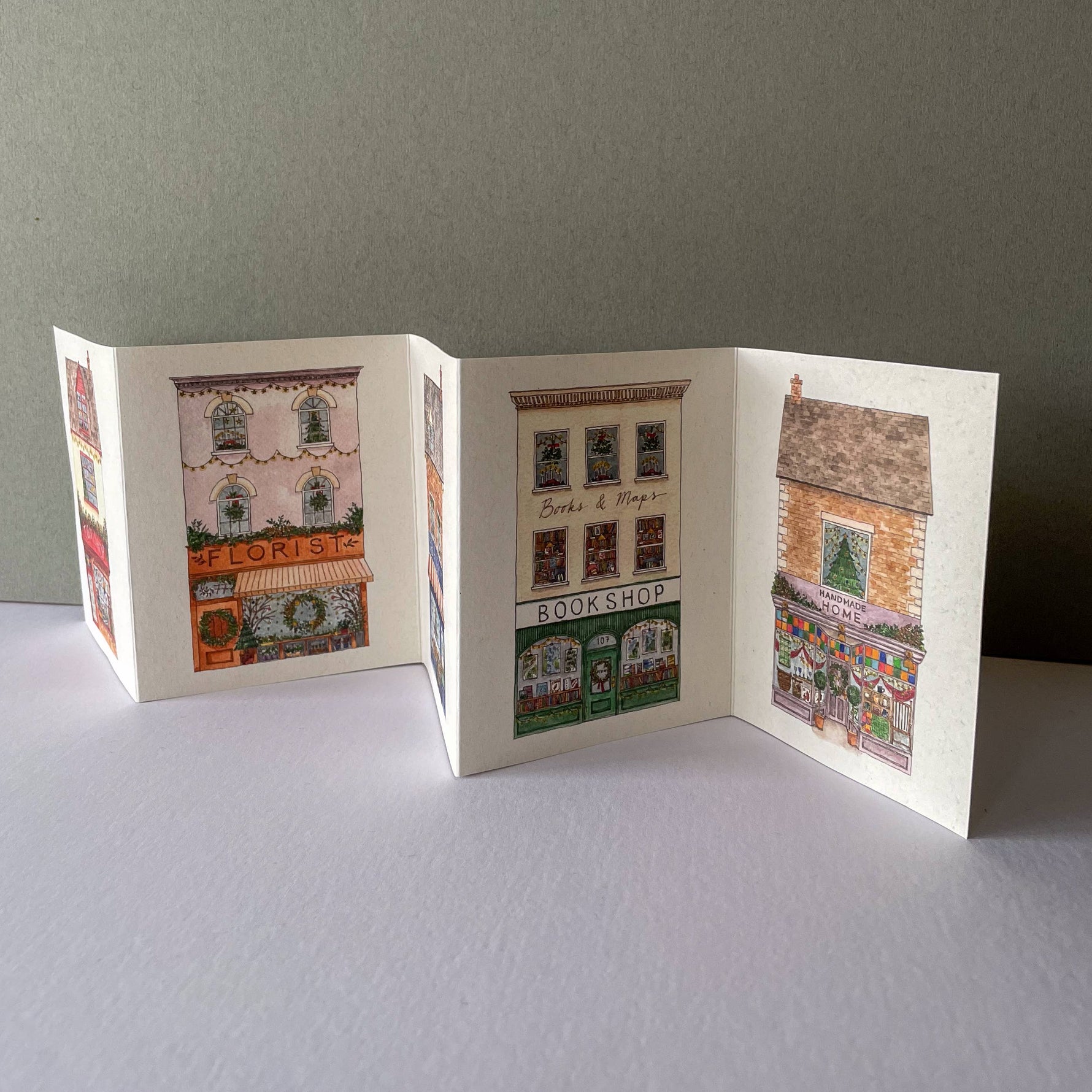 Concertina Card Decoration Shop Front Christmas Card