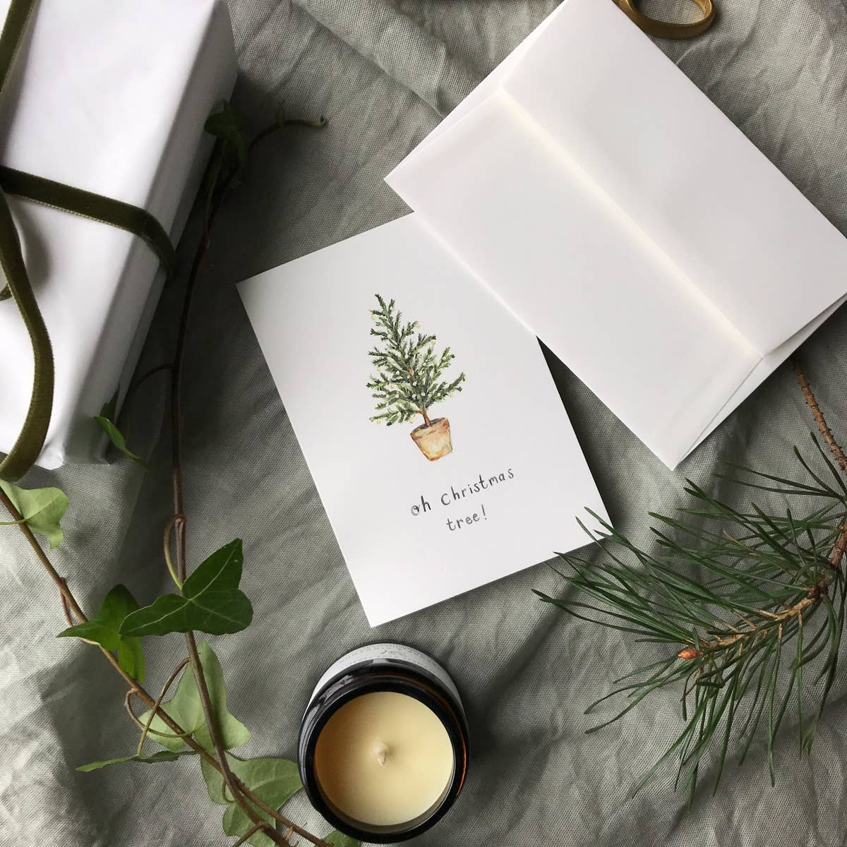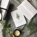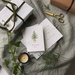 Printed in the UK on smooth thick card for a beautiful luxurious texture. Paired with a luxury envelope. Folded card is A6 Luxury Modern Christmas Card Simple Seasons greetings Christmas Botanical Nature Foliage Watercolour artist Festive Seasonal Vintage Traditional Country Woodland cottage-core; rustic interiors; beach house; white aesthetic;